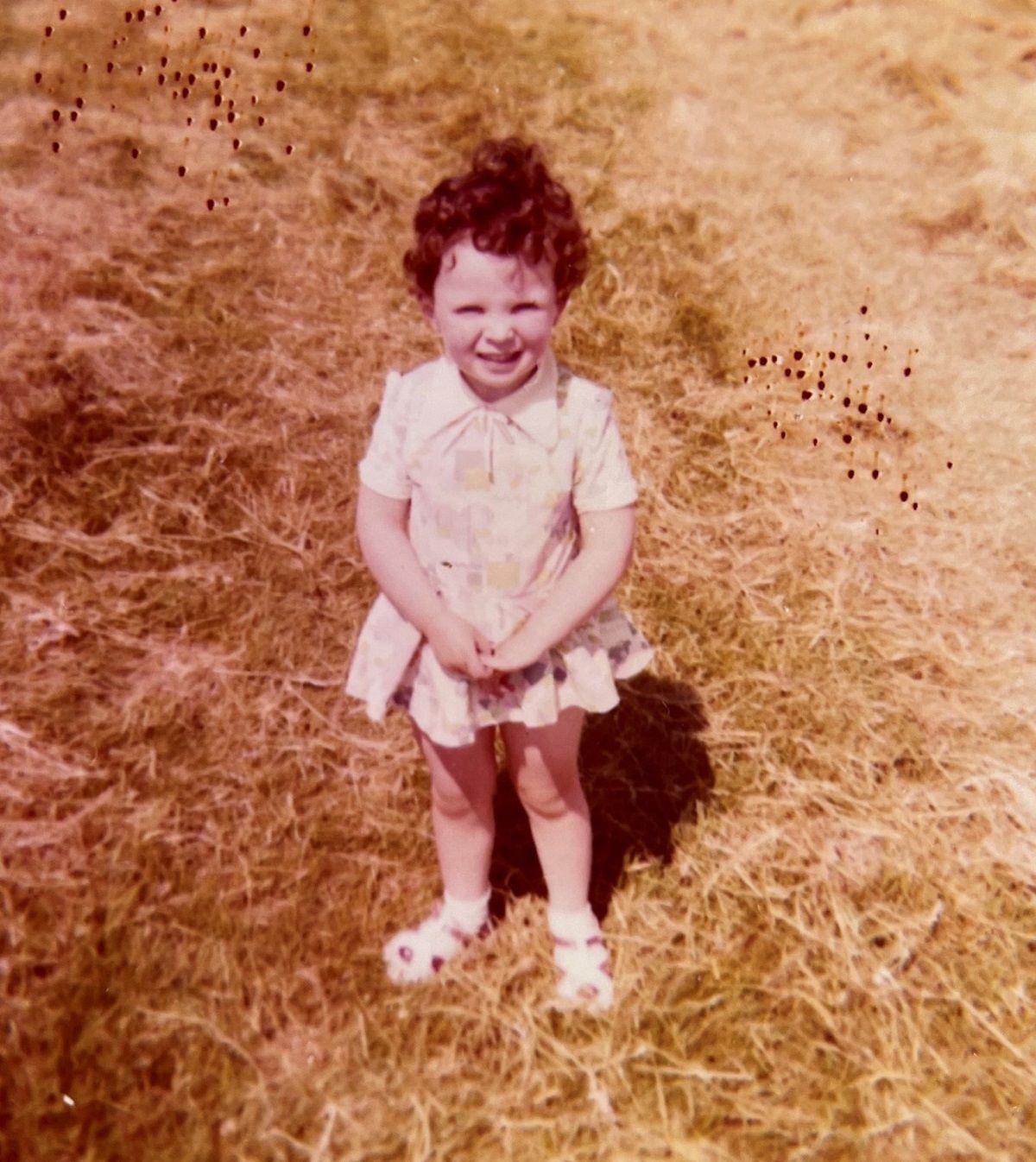 is a girl in her favourite dress. It is a hot summer in 1975 and this girl is
