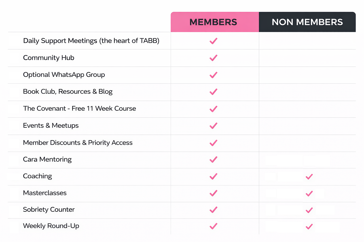 TABB is a warm, inclusive space where you will be met exactly where you are by women who get it. The Circle our not for profit Membership is the core of our community, it’s where the daily support, connection and guidance that define TABB truly happen.